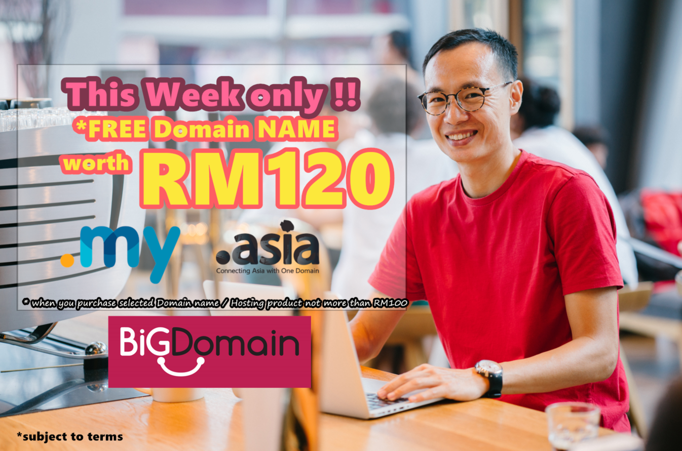- Go to Bigdomain.my , Search and Complete .MY or .ASIA Domain Name more than RM50 (single invoice)